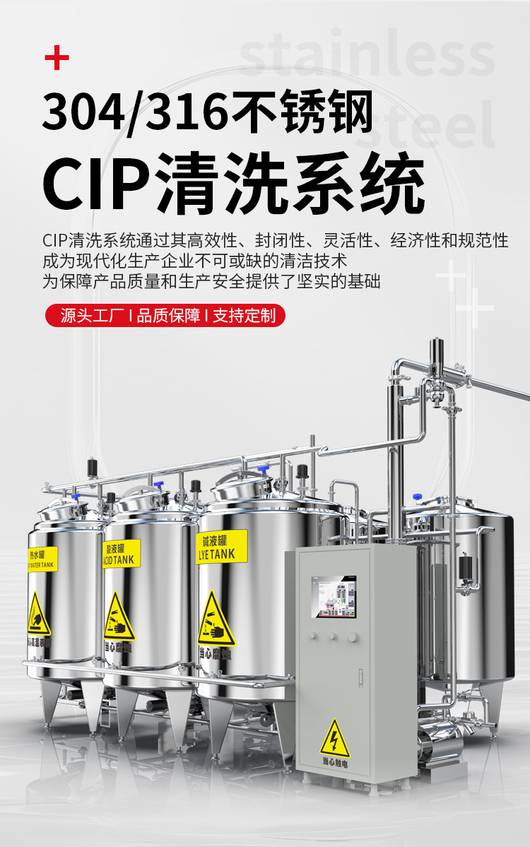 CIP清洗系统(Cleaning In Place)即就地清洗系统,是一种自动化清洗设备,能在设备内部进行高效、彻底的清洁,广泛用于食品、制药、化工等行业。