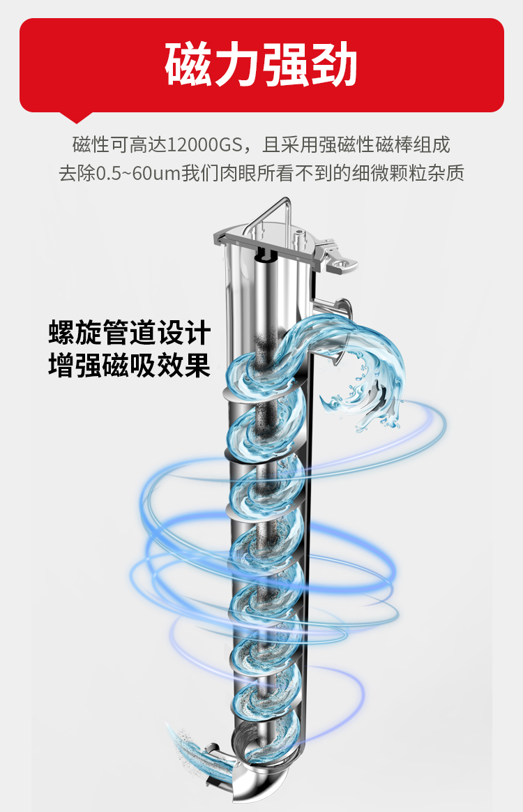- 磁性强大:表磁高可达10000GS,磁力比同类常规磁性材料(铁氧体或铝镍钴永磁材料)高5 - 20倍,除铁效果好,能除去0.5 - 60μm肉眼难以看到的微小颗粒。