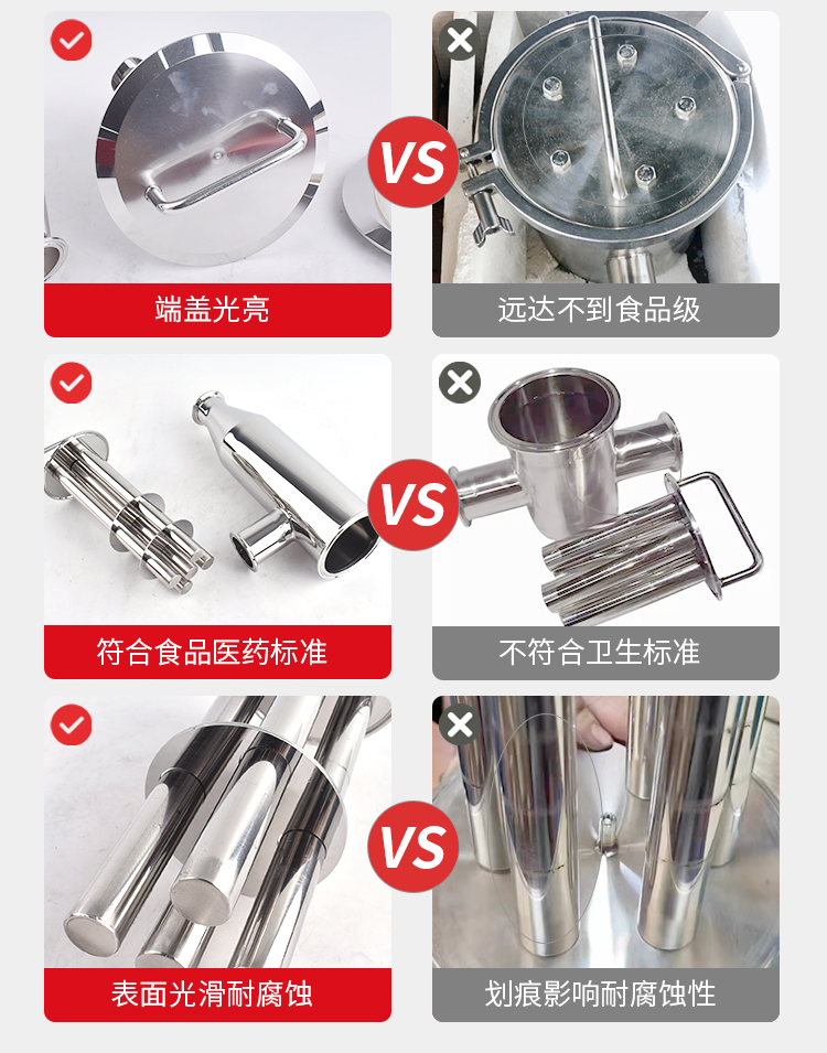 - 材质安全:选用优质不锈钢材料,如SS304、SS316,表面处理有镜面抛光、拉丝抛光、喷砂处理等,可达到食品级和卫生级要求标准,耐腐蚀、强度高、韧性好,能适应多种恶劣工况,保证设备长期稳定运行。