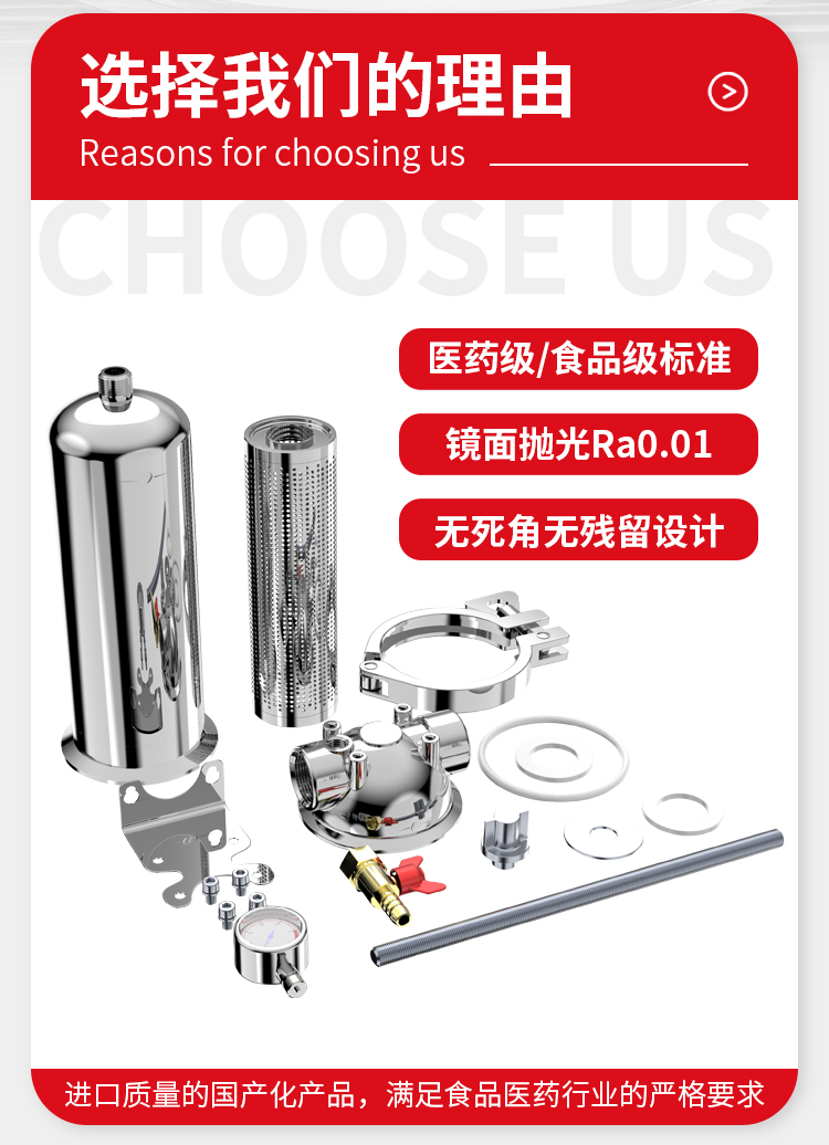 • 结构合理:结构简单、体积小,部分产品采用快装或法兰连接,便于安装和拆卸;一些过滤器内部结构设计合理,过滤面积大,能满足大流量过滤需求。