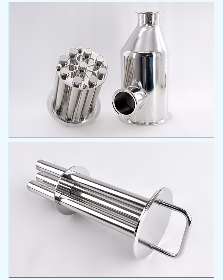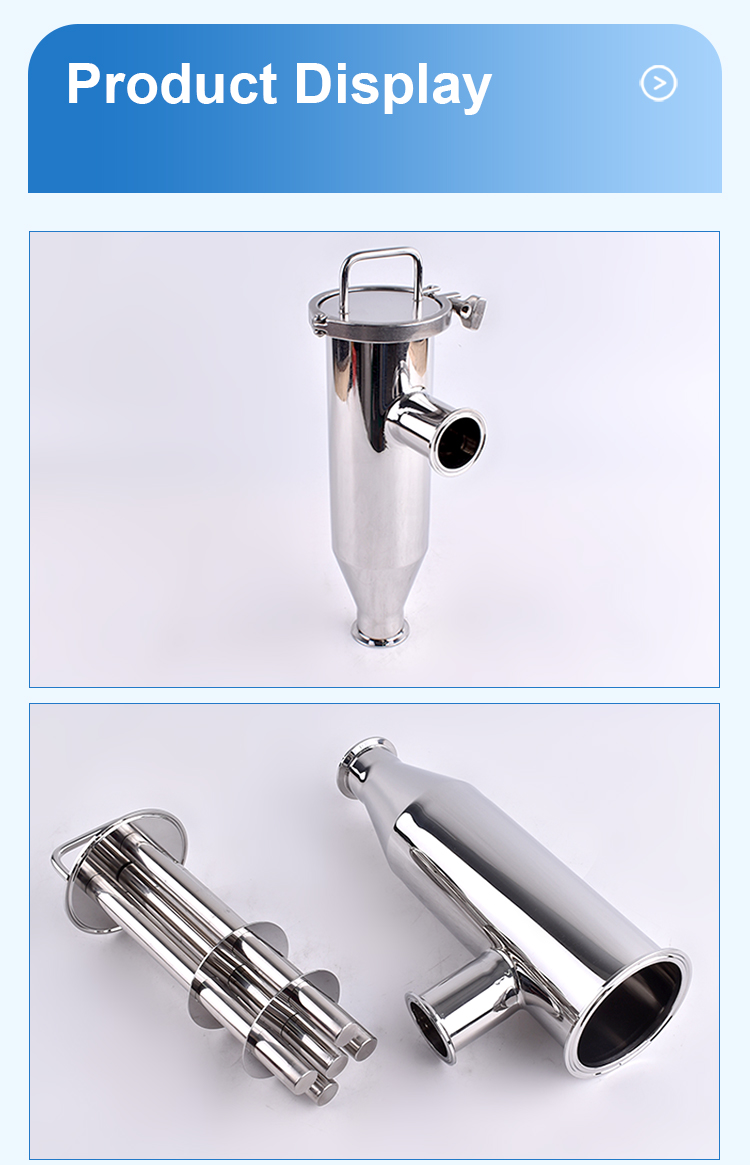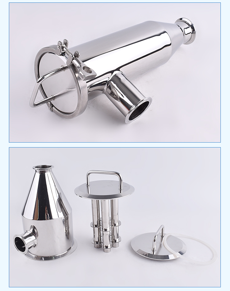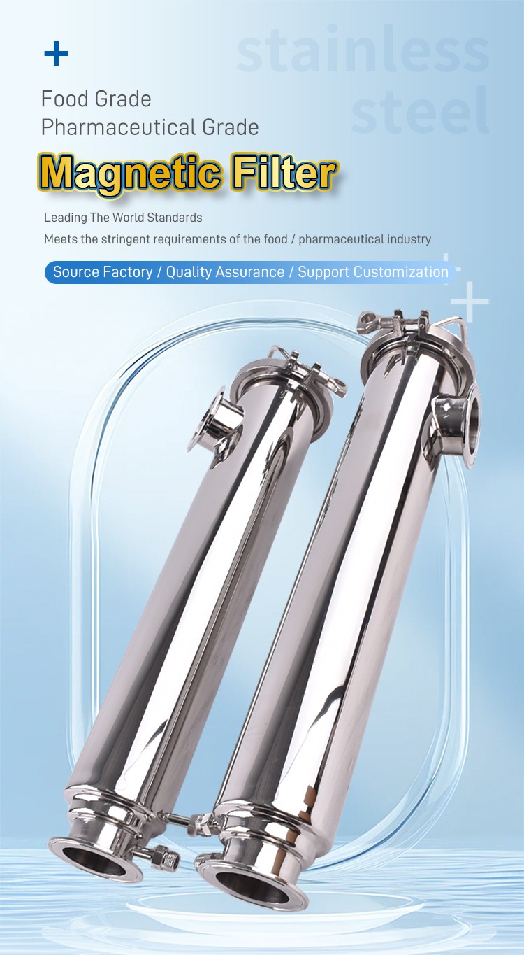 The stainless steel magnetic filter is composed of a magnetic rod group and a stainless steel cylinder. It uses the powerful magnetic field generated by the magnetic rods to filter out fine iron impurities in liquids, slurries, powders, gases and other materials conveyed by air pipelines. Common types include flange type, quick-installation type, etc.