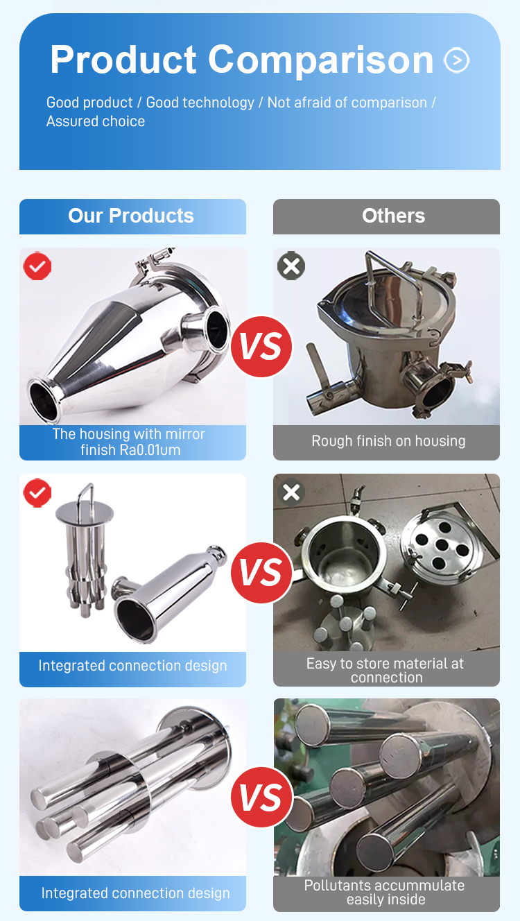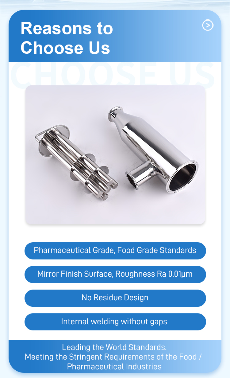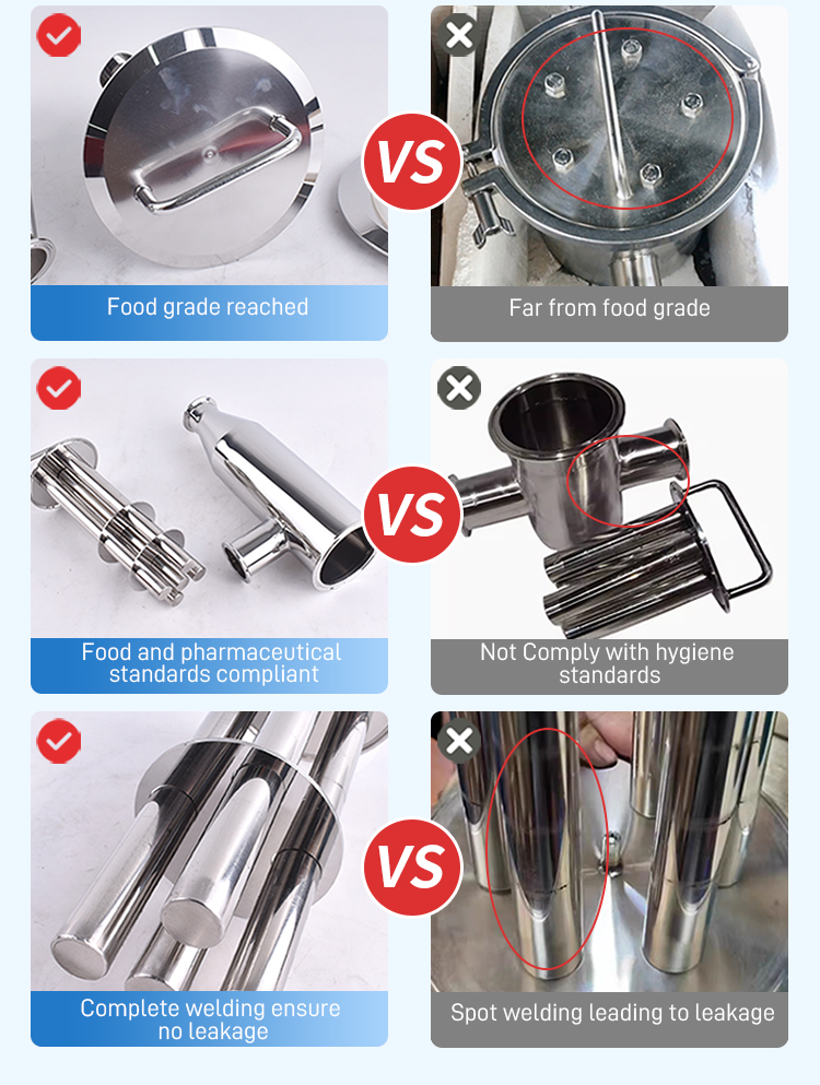Material safety: High-quality stainless steel materials such as SS304 and SS316 are selected. Surface treatments include mirror polishing, brushed polishing, sandblasting, etc., which can meet food grade and hygiene grade standards. It is corrosion-resistant, has high strength and good toughness, and can adapt to various harsh working conditions, ensuring the long-term stable operation of the equipment.