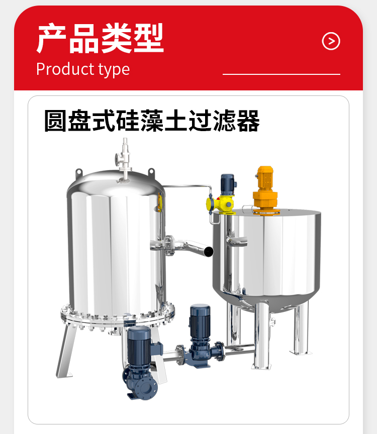 - 滤材可再生:部分类型的硅藻土过滤器滤元可再生,如可再生式硅藻土过滤器停机后,罐内硅藻土再开机时可重复使用,节省硅藻土和反冲洗水量。