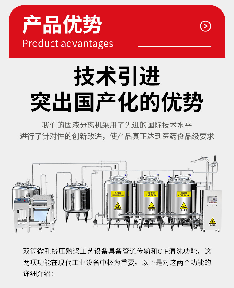 - 易于清洁:符合食品加工卫生安全要求,部分设备易清洗,如新型固液分离膜设备适合全CIP在线清洗控制 。