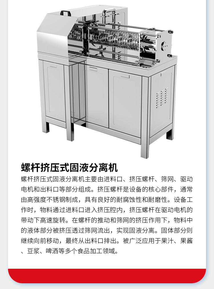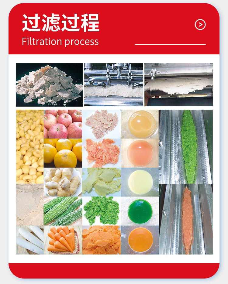 - 果蔬加工:分离果蔬汁和果渣,如苹果、葡萄等果汁生产。