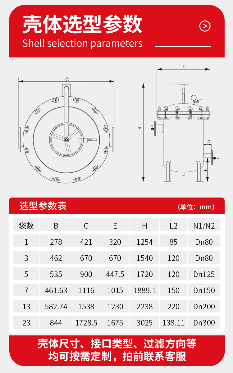 • 应用灵活:滤袋匹配多样,可根据工况选择不同滤袋,实现粗滤、中滤或精滤;安装方式多样,有法兰、快装、螺纹等。