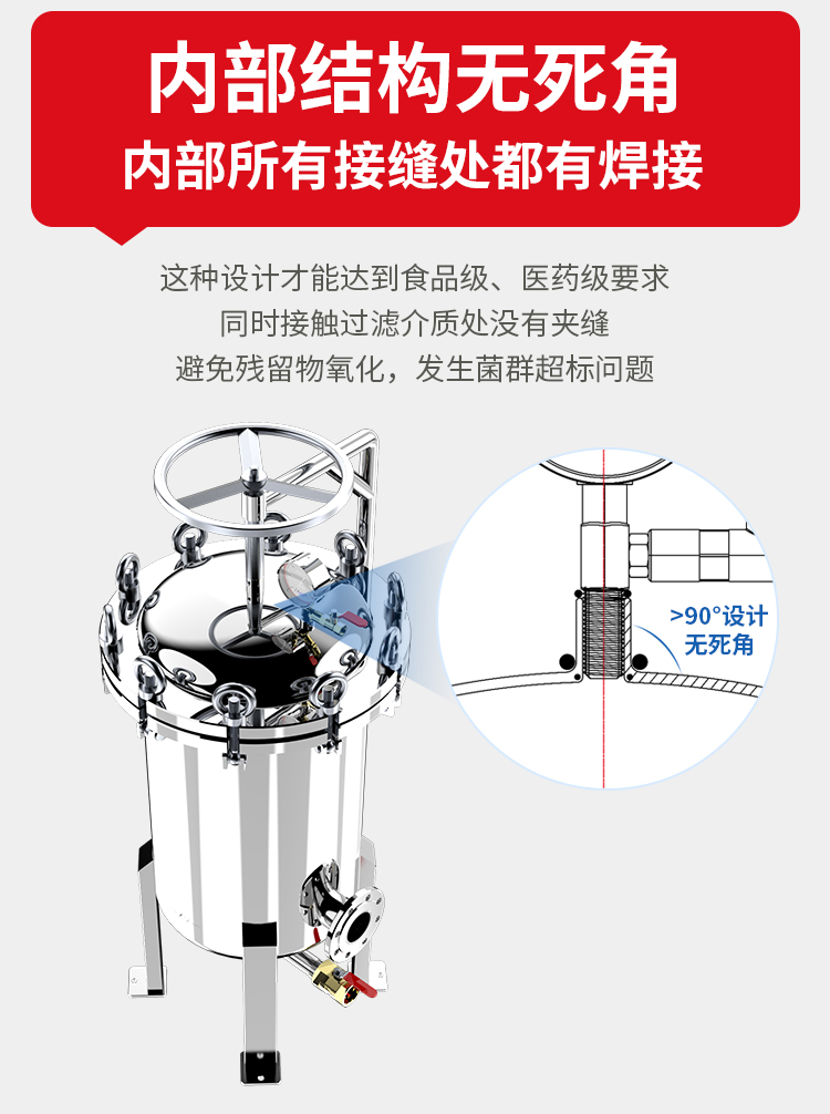 • 密封性好:O型圈与快开机构等确保无泄漏,有效保证过滤品质。