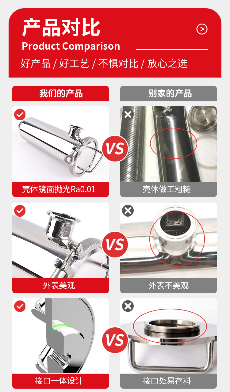 • 过滤效果好:通过内部专业滤芯筛选,能分离杂质和有害物质,改变液体流向形成紊流,使杂质与滤网充分接触,提升过滤效率。
