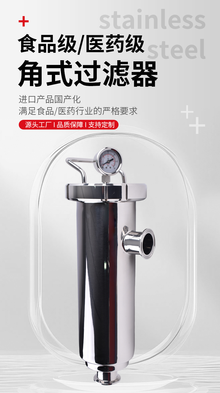 不锈钢角式过滤器是一种用于过滤液体中杂质的设备,其进出水口呈90°角分布,主体由不锈钢制成,内部有滤芯等结构,属于单元式过滤设备,有单联和双联等类型,可实现液体过滤和精度过滤。