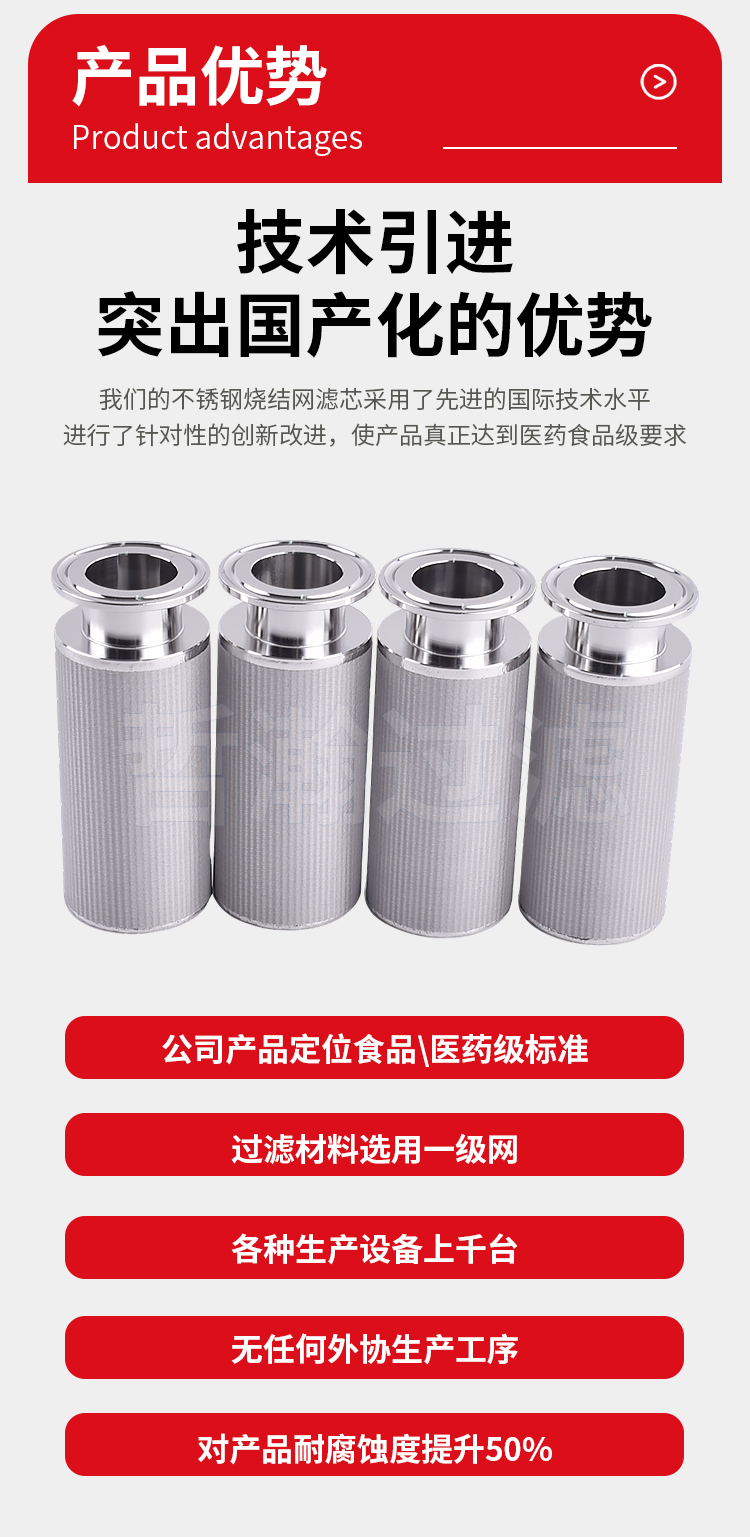 过滤精度范围大(1 - 300μm),稳定且可反冲洗;强度好,耐高压;耐高温,部分能承受480℃;耐腐蚀,适用于酸碱等介质;易加工,可定制。