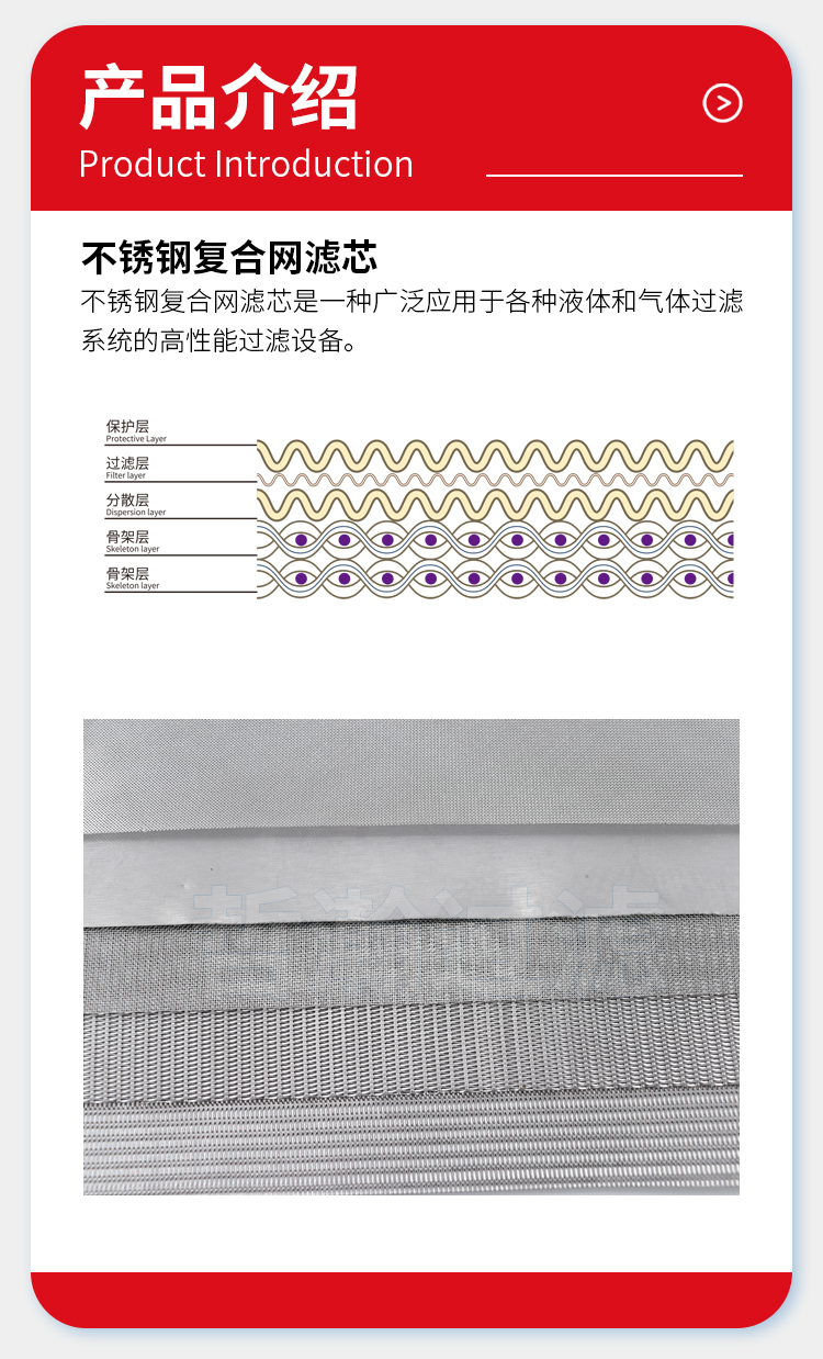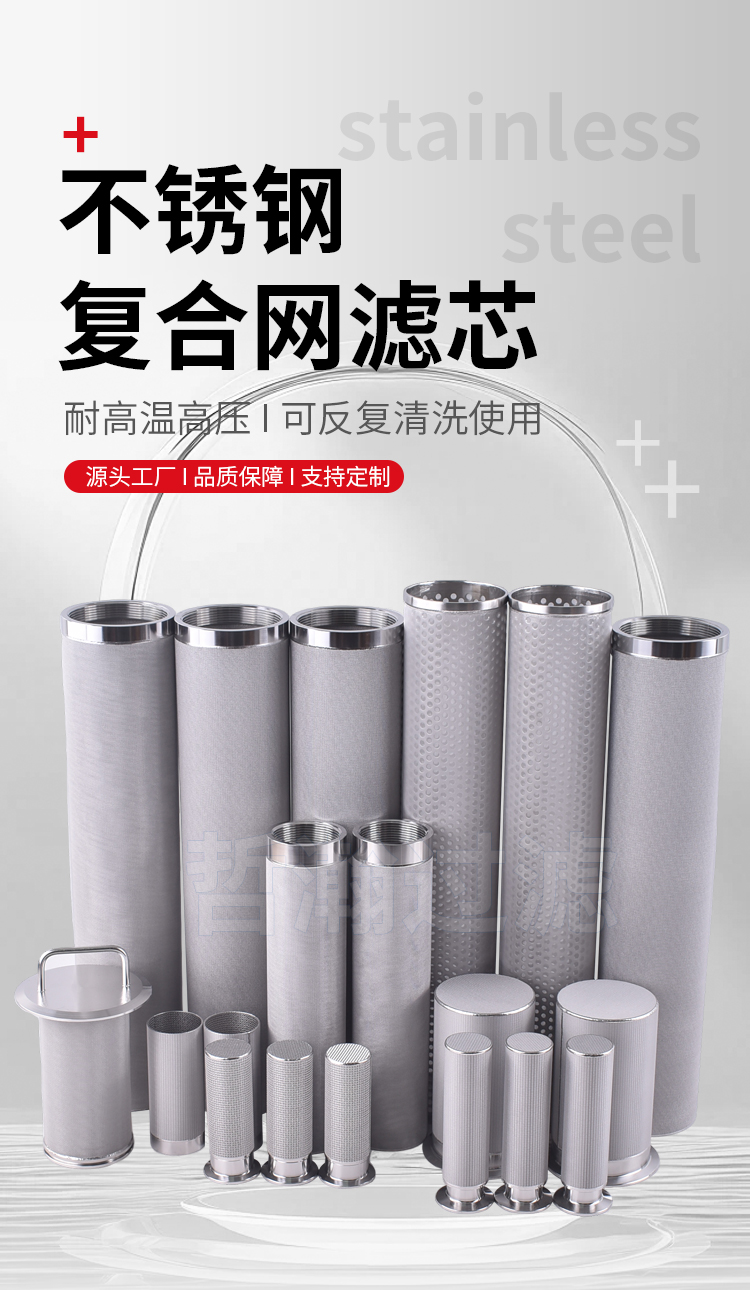 不锈钢复合网滤芯是广泛应用的过滤元件,由多层不锈钢丝网叠放后经烧结等工艺制成。