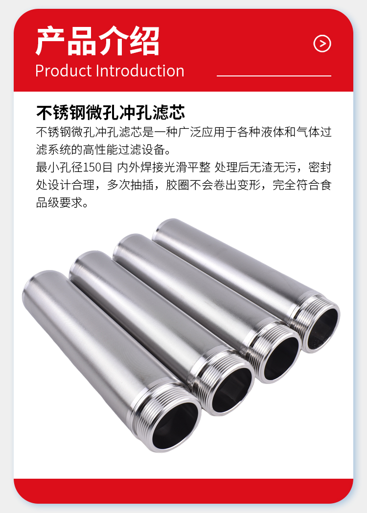 不锈钢微孔滤芯是新型过滤设备微孔过滤器的核心,为折叠式筒式结构,由特殊材料制成,有微小孔径,安装在不锈钢外壳内,外壳经抛光处理,符合相关规范,连接方式多样。