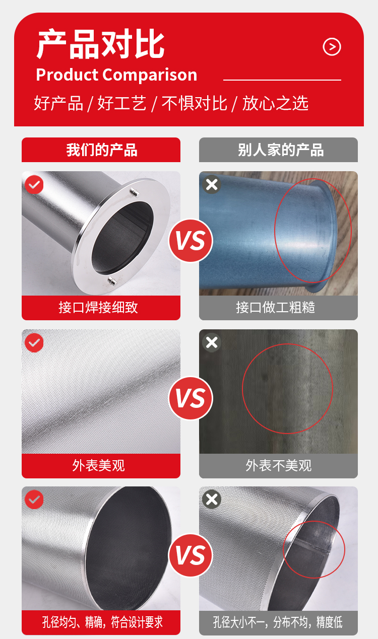 • 其他特性:开孔率高达30%,长度最长为6米,外径从φ20mm到φ1250mm,缝隙(mm)为0.02 - 0.5可根据客户要求制作。