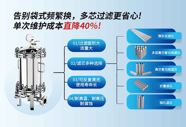 告别袋式频繁换,多芯过滤更省心! 单次维护成本直降40%!